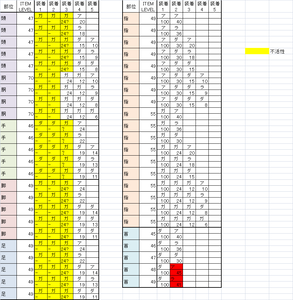 某サイトでDL装備のパラメータを吟味中
